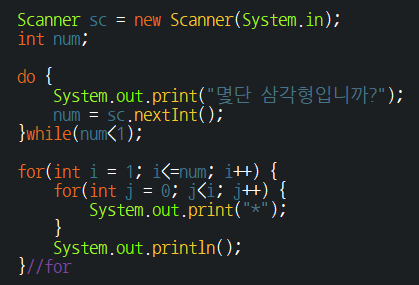 실습 1-8 / 직각 이등변 삼각형 별 출력