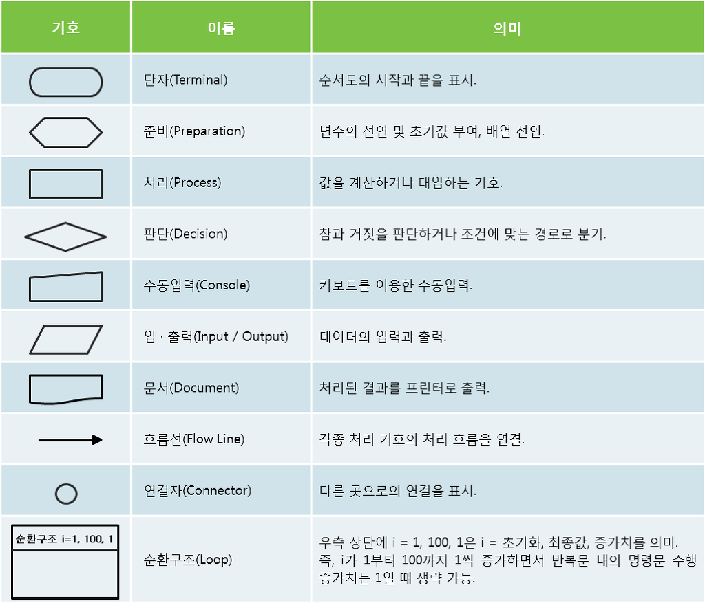 알고리즘 순서도의 기호