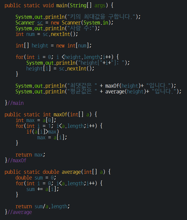 실습 2-4 / 배열 요소의 최댓값 구하기 +평균값