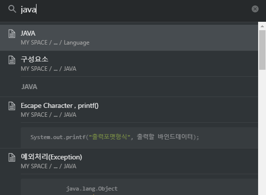 원래는 티스토리에서 필기한 것들을 바로 올렸었는데 이 기능때문에 노션에 정리를 먼저하고 티스토리에 올리게 되었다. ctrl + p를 누르면 Quick Find 기능이 실행되는데 단어 하나만 검색해도 내가 작성했던 모든 메모에서 그 단어를 찾아준다. 찾고싶을 때 바로 찾을 수있는 굉장히 강력한 기능.